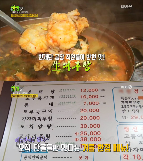 '2TV 생생정보' 오늘방송맛집, 생대구탕…수원 인계동 '거진생태도루묵' 최강맛집