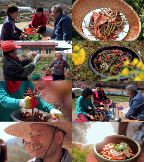 충청북도 괴산 각연사. 풍경이 아름다워 천년고찰이라 불리는 이곳을 찾은 표복숙(64)씨는 겨우내 힘겨운 수행에 지친 스님을 위해 기운을 복돋워 줄 봄김치 공양을 준비한다. 각연사 뒷마당, 바위 사이사이 고개를 내민 돌나물은 ‘석상채(石上菜)’라고도 불리며 부드럽게 사각거리는 식감이 좋아 물김치를 담으면 맛이 좋단다. 절에서 저장해두고 먹는 각종 과일에 고춧물과 생강, 연근을 넣어 만드는 과일김치는 과일의 달콤하고 시원함에 생강의 따뜻한 기운이 더해져 봄철 떨어진 기력을 보강해주는 음식이라고.