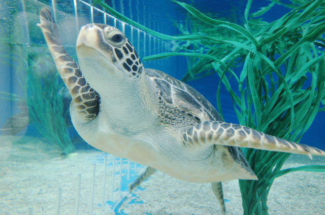 건강을 되찾고 부산 아쿠아리움에 전시 중인 푸른바다거북. 씨라이프 부산 제공