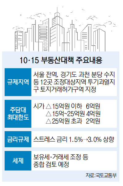 정부가 서울 전역과 경기도 12개 지역을 규제지역 또는 토지거래허가구역으로 묶고 주택담보대출 규제를 강화하는 ‘초강력’ 대책을 내놓자 부동산 시장은 술렁이고 있다.