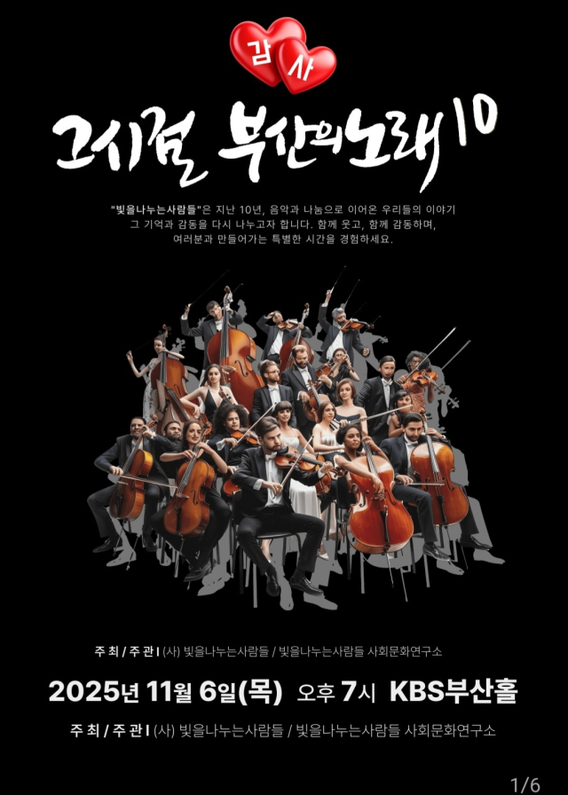 6일 오후 7시 KBS 부산홀. 전석 초대. 문의 (사)빛을나누는사람들 051-761-4736.