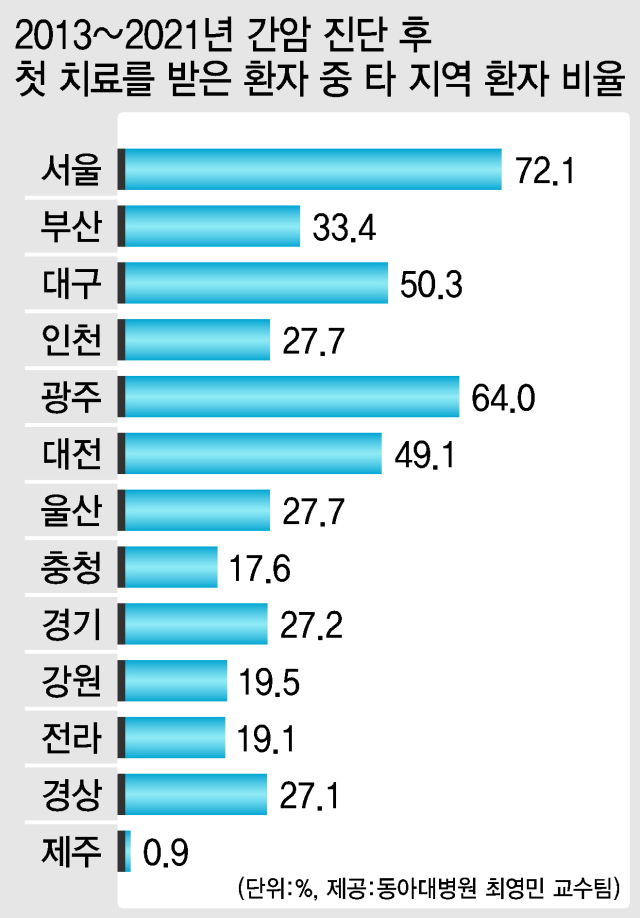 간암 거주지 진료 경상도 17.6% 최하위… 부산 절반 불과