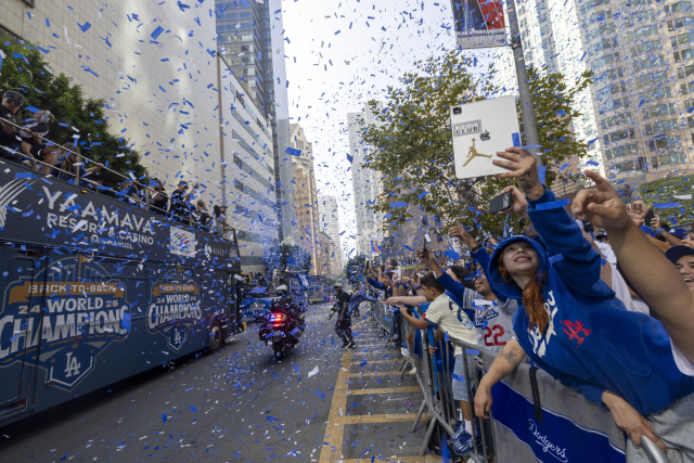 [포토뉴스] 월드시리즈 2연패 LA 다저스… 시민들과 함께!