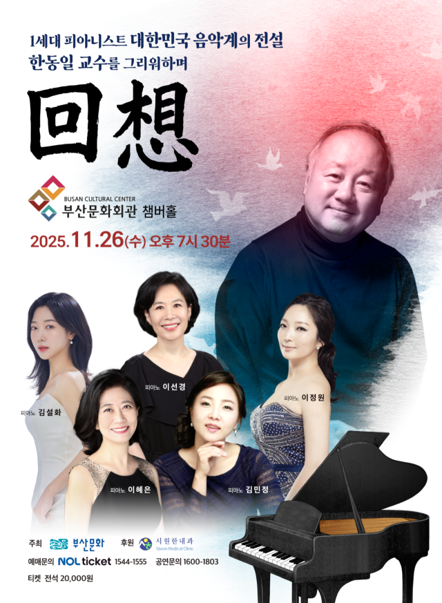 공연기획사 ‘부산문화’(대표 박흥주)는 오는 26일 부산문화회관에서 ‘회상’(回想, 대한민국 음악계의 전설 한동일 교수를 그리워하며) 연주회를 무대에 올린다.