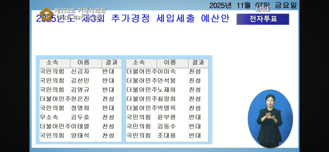 국민의힘 소속인 신금자 의장이 찬성, 양태석 의원은 기권했다.