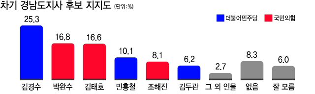 김경수 25.3%, 박완수 16.8%