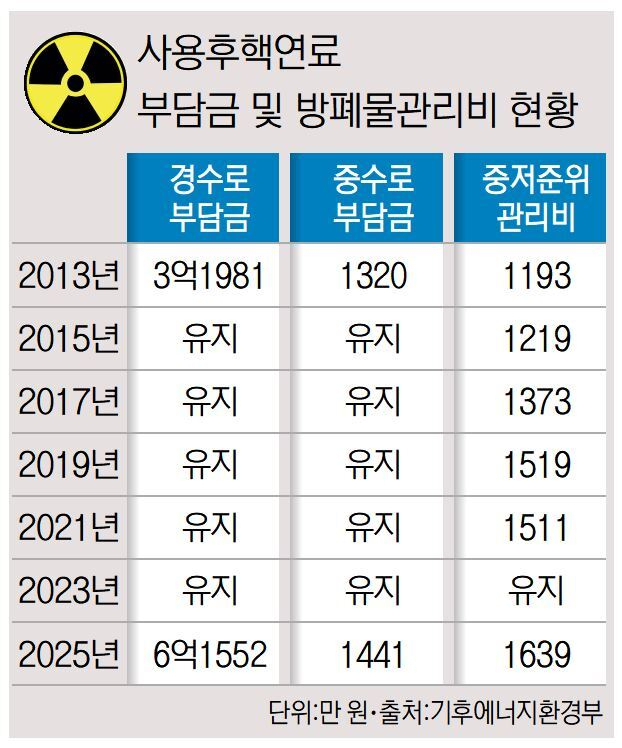 기후에너지환경부 관계자는 “사용후핵연료 부담금은 장기간 동결된 만큼, 대부분 부담이 커져도 인상할 필요가 있다고 공감한다”며 “미루면 결국 더 큰 부담이 된다. 미래 세대의 부담을 줄이는 방향으로 비용을 현실화했다”고 말했다.