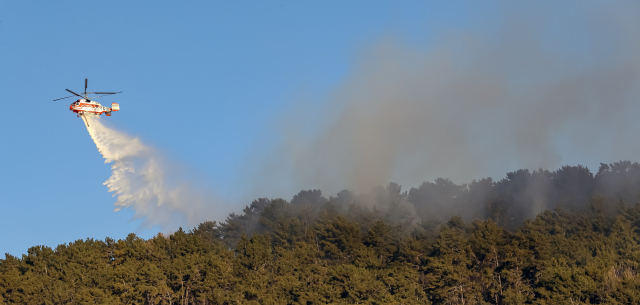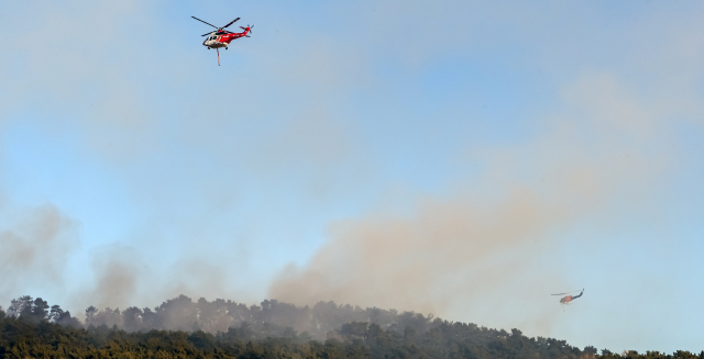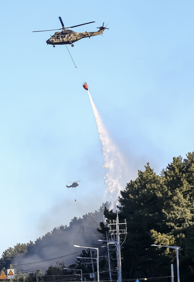 큰 불길 잡힌 기장 산불, 헬기 17대 투입해 진화