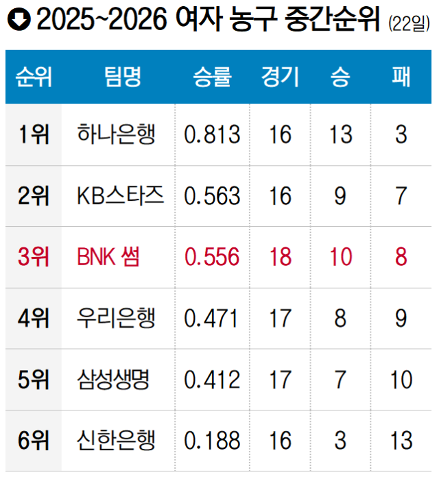하지만 2쿼터에만 무려 4개의 3점포를 몰아 넣으며 팀 분위기를 이끌었던 이소희의 맹활약으로 BNK는 선두 하나은행에 이어 두 번째로 시즌 10승(8패)째를 올리며 이날 현재 2위 KB스타즈에 승차 없는 3위를 유지했다.