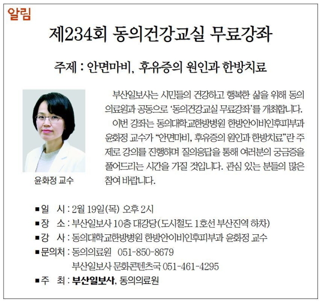 [알림] 제234회 동의건강교실 무료강좌