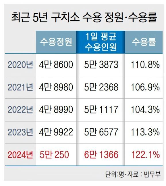 국립부경대 경찰범죄심리학과 함혜현 교수는 “2017년 법원은 판결을 통해 과밀수용으로 인한 수용자의 스트레스 등 정신적 피해를 인정한 바 있다”며 “과밀수용도 문제지만 교정시설 부족으로 폐쇄된 공간에서 한꺼번에 수천 명을 수용하는 과다수용도 뿌리 깊은 문제”라고 말했다.