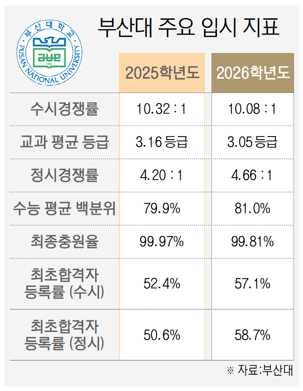 한편, 부산대는 이번 입시 열기를 이어가기 위해 다음달 9일 벡스코에서 고 1~2학년 대상 'PNU 오픈캠퍼스'를 개최하며, 다음달 22일부터 부산과 창원 등지에서 고3 수험생 대상 설명회를 순차적으로 진행할 예정이다.