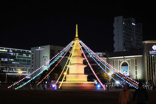 지난 25일 경남 창원시가 부처님 오신 날을 한 달 앞두고 시청 앞 광장에 ‘봉축 점등식’을 개최했다. 창원시불교연합회(회장 법안 스님) 등이 주최한 이번 행사는 부처님의 자비와 지혜의 불빛으로 시민들의 마음에 평안을 주고 화합과 안녕을 기원하기 위해 마련됐다. 창원시 제공